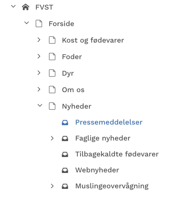 Indholdssider bruges fra niveau 4, som vist i dette eksempel: